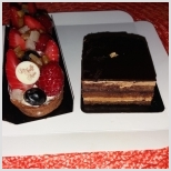 @LP that’s for you! Opéra, my favorite cake. If you don’t like chocolate you can have a bite of fruit tartelette.