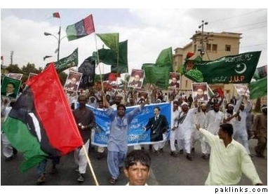 Blood hungry members of the PML (Nawaz), PPP and JUP demonstrating for “judicial independence”.