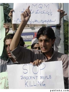 There is no question about it, the MQM is a bunch of terrorists, and they have once again demonstrated that they cannot be tamed, like Musharraf was trying to do so, and they must be eradicated. You cannot tame the evil for a little while, they come back to what they are best at. Also, Chaudhry Shujaat and Durrani, who the hell are you two trying to fool, we all know the MQM is behind all this fisaad...