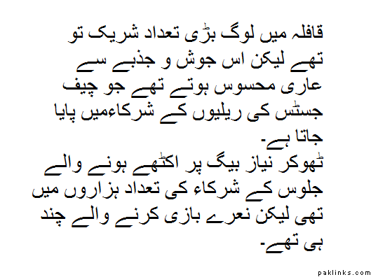 In western countries you never see a "Chief Justice" - who is supposed to be neutral and above any bias attend/lead opposition party rallies in city after city. The CJ has become the most active politcal personality in Pakistan now, and it's time he formed his own party rather than dragging the judiciary down to the street level for his personal ego.