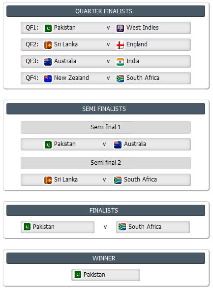 Pakistan will defeat West Indies and Australia will defeat India