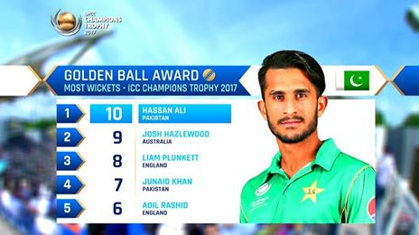 Hasan Ali is now the leading wicket-taker at the Champions Trophy with 11 wickets