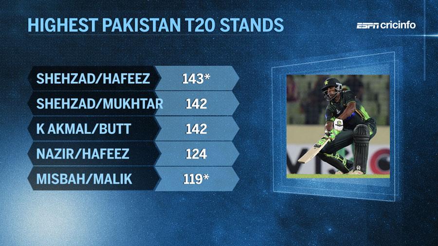 Fall of wickets 1-142 (Ahmed Shehzad, 13.3 ov), 2-144 (Mukhtar Ahmed, 14.4 ov)