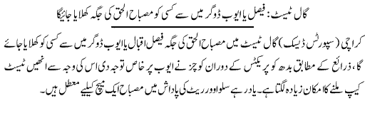 i guess Faisal ki jagah new player ko chance diya jaiye ga