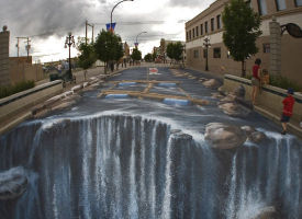 Street painting, also commonly known as pavement art, chalk art, sidewalk art, is the performance art of rendering artistic designs on pavement such as streets, sidewalks, and town squares with impermanent and semi-permanent materials.