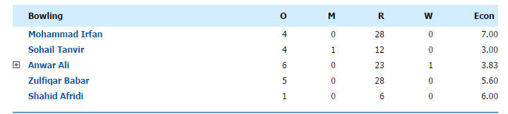 AJ Finch c Mohammad Irfan b Anwar Ali 18 (34b 3x4 0x6) SR: 52.94