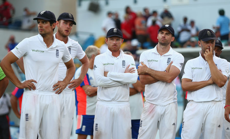 [HR][/HR]Fall of wickets 1-11 (Trott, 4.5 ov), 2-13 (Cook, 5.5 ov), 3-18 (Bell, 8.3 ov), 4-28 (Root, 14.4 ov), 5-39 (Ali, 19.3 ov)