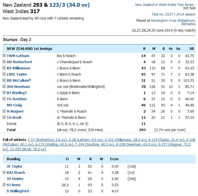 Re: 3rd Test: West Indies v New Zealand at Bridgetown