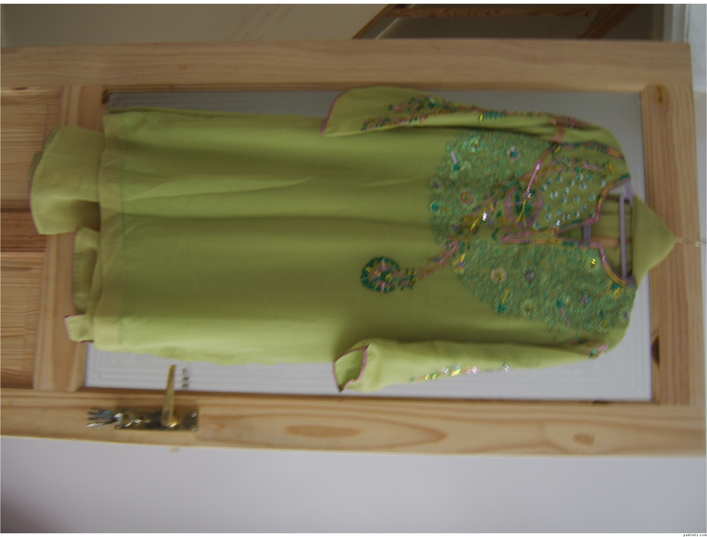 2nd outfit, green with work done on the front and back and sleeves