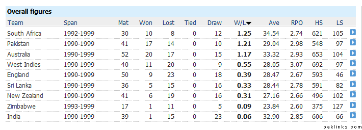 This is how bad India were in away tests in the 90s, a solitary win against Sri Lanka