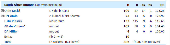 Re: 5th ODI: India v South Africa at Mumbai on Oct 25, 2015