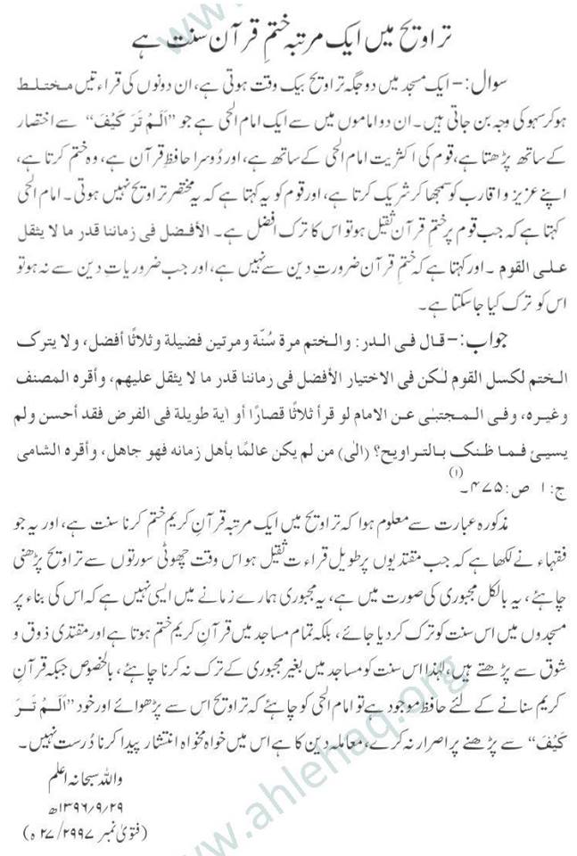 There is increasing trend of completing Quran in taraveh within 6-10-15 days.