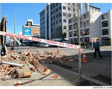 Christchurch police reported road damage in parts of the city of 400,000 people, with a series of sharp aftershocks rocking the area. Police officers cordoned off some streets where rubble was strewn about