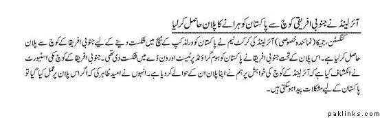 It says that the Irish team has obtained the strategy plan from South African coach on how to beat Pakistan. SA used this plan against us during our last trip there and were able to beat Pakistan. Now the Irish have it as well