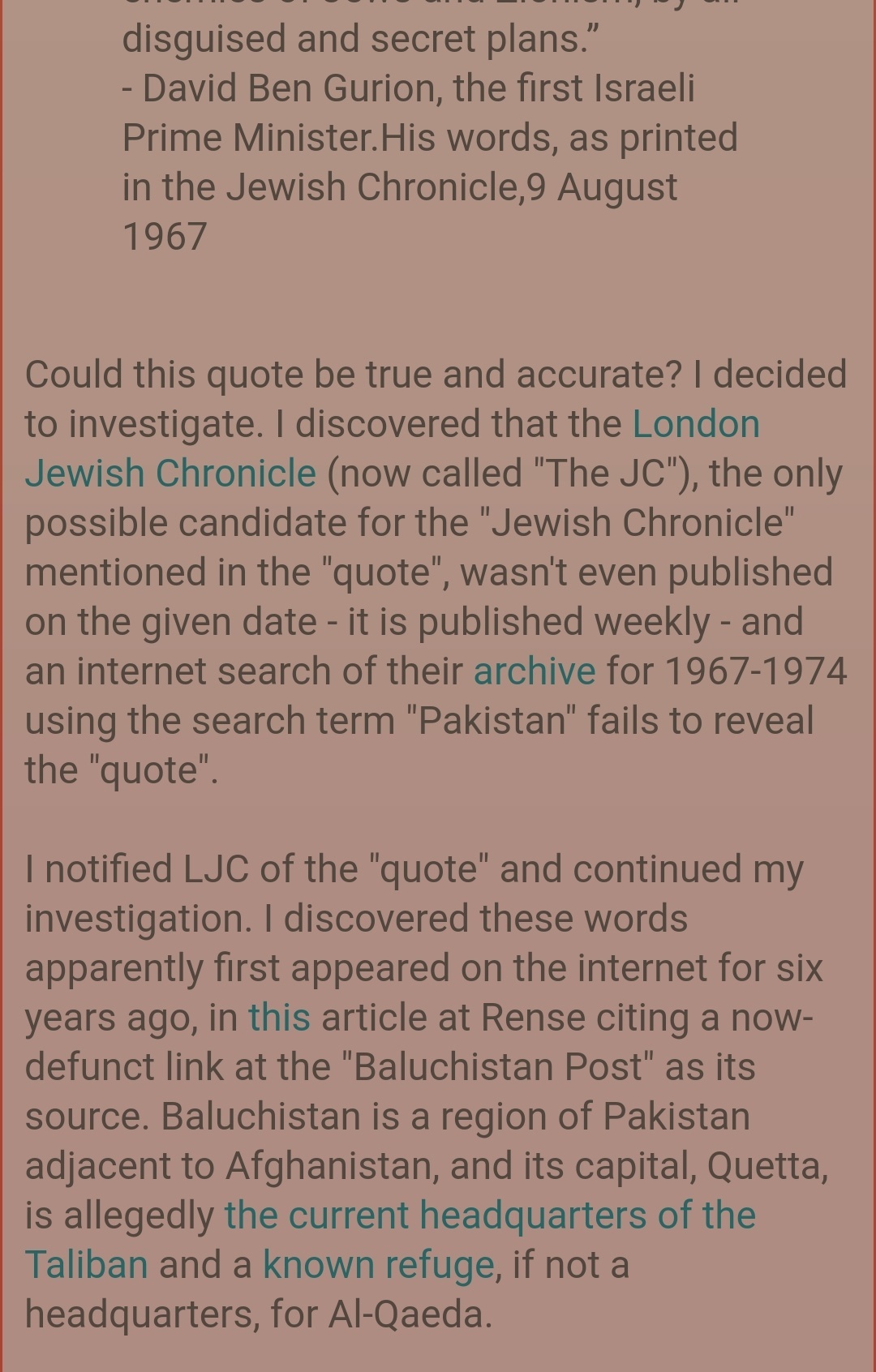 ***The world Zionist movement should not be neglectful of the dangers of Pakistan to it. And Pakistan now should be its first target, for this ideological State is a threat to our existence. And Pakistan, the whole of it, hates the Jews and loves the Arabs. ***