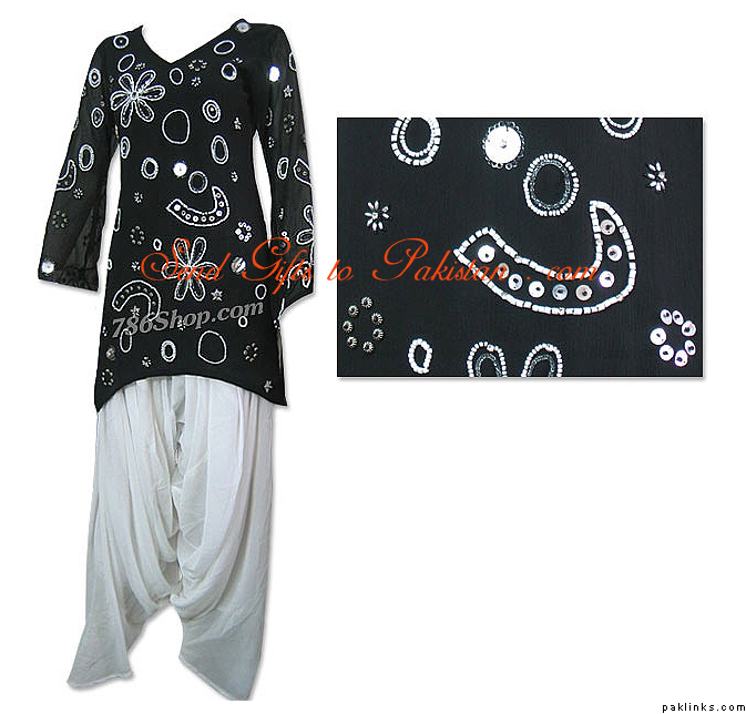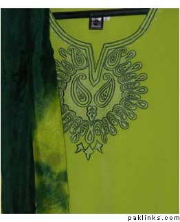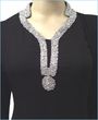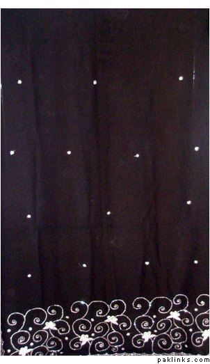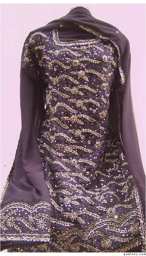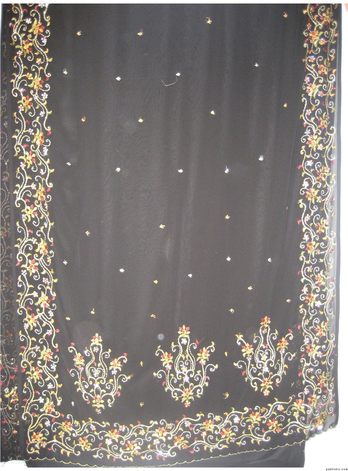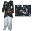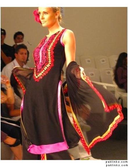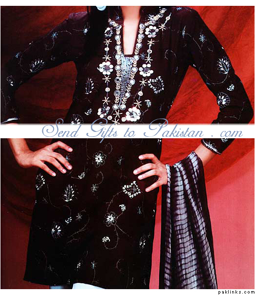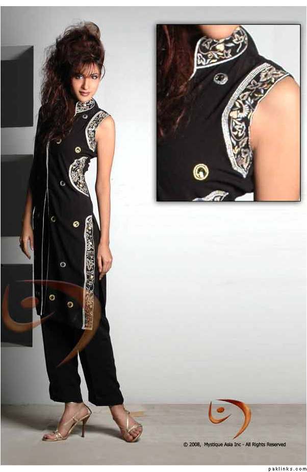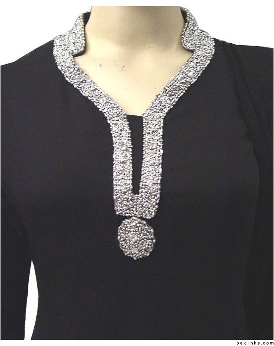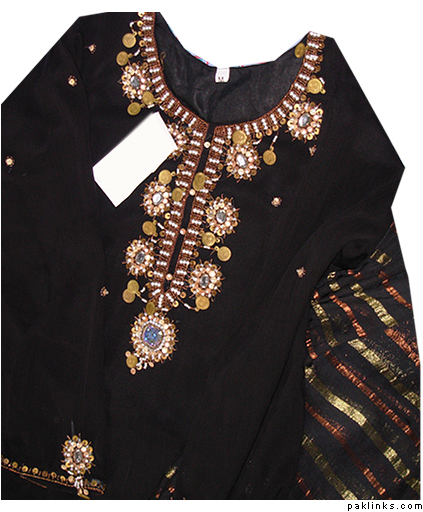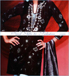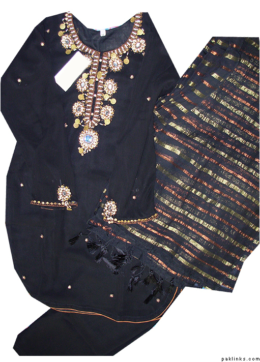 Im Aisha and i just got made a black dress its pure black, and I want some sort of karhai on it, but im not sure about what colour to combine with black, i want to have something different then silwer and black, pink and black, brown and black, blue and black,