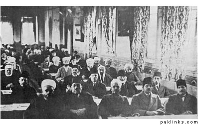 A rare photograph of Allama Iqbal at The General Islamic Congress (Jerusalem 1931). He is seated front row, far right-hand corner.