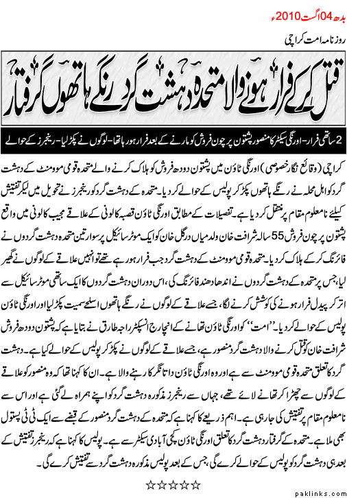 but unfortunately, mqm guys very easily get rid of this whenever they get caught because both zordari and altaf are bhai bhai these days... and "joker malik" is always there to help mqm get out of trouble they get into because of their own mess.
