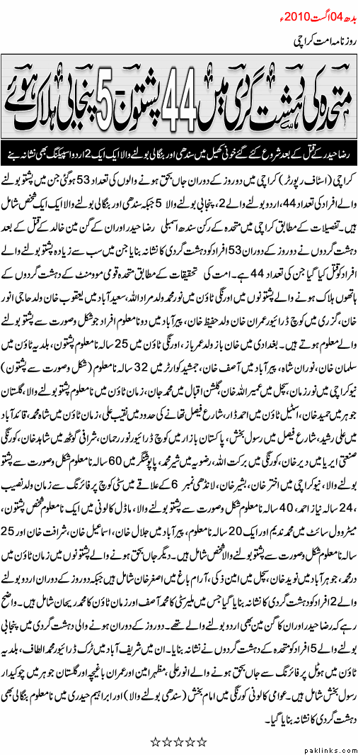 ^ dear i lived my life in Karachi, i dont need ummat to tell me what happens there : )