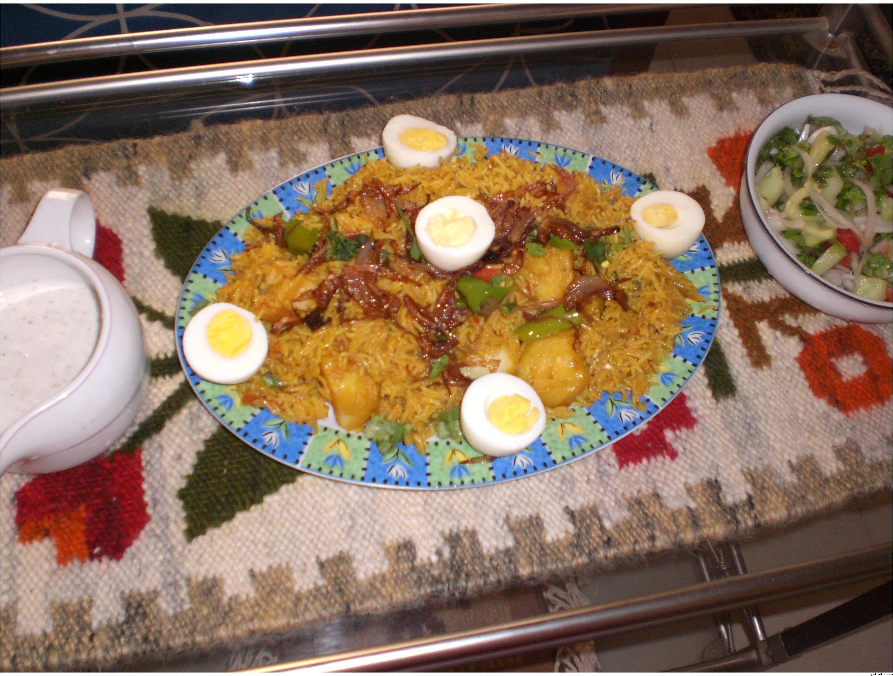fry 2 sliced onions in lil bit of oil + zeera + sabut garam masala lyk kali mirch,peppercorns,elaichi,bari elaichi,tez patta etc...i add them in lil quantity...den add in 2-3 green chillies, salt, and yoghurt...bhoonify a bit n den add in boiled cholay and soaked rice....if uve boiled the cholay at home den add the cholay water which iz left after boiling and if ur using canned cholay then add in the normal water...let it simmer and den dum the rice the usual way...i even like adding 2 small tomatoes with the yoghurt u kno the punjabi way...its upto u!