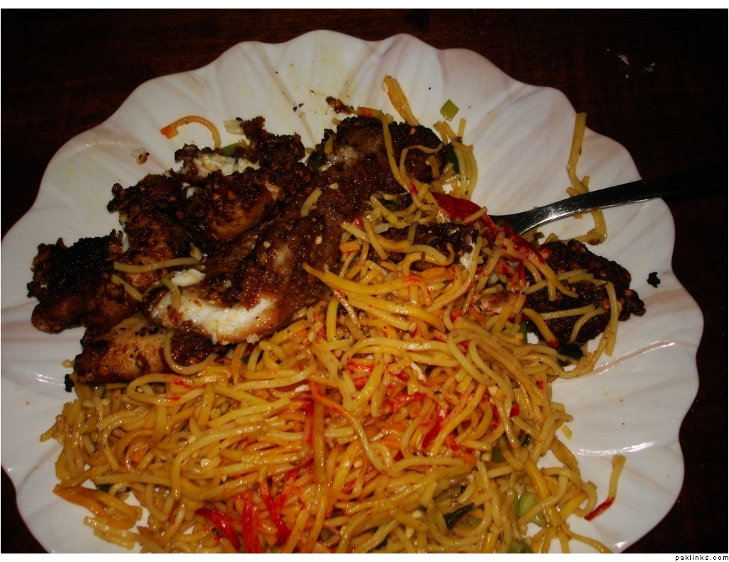 (erm basically cold leftover boiled noodles mixed with onions and biryani masala..tasted awesome!)