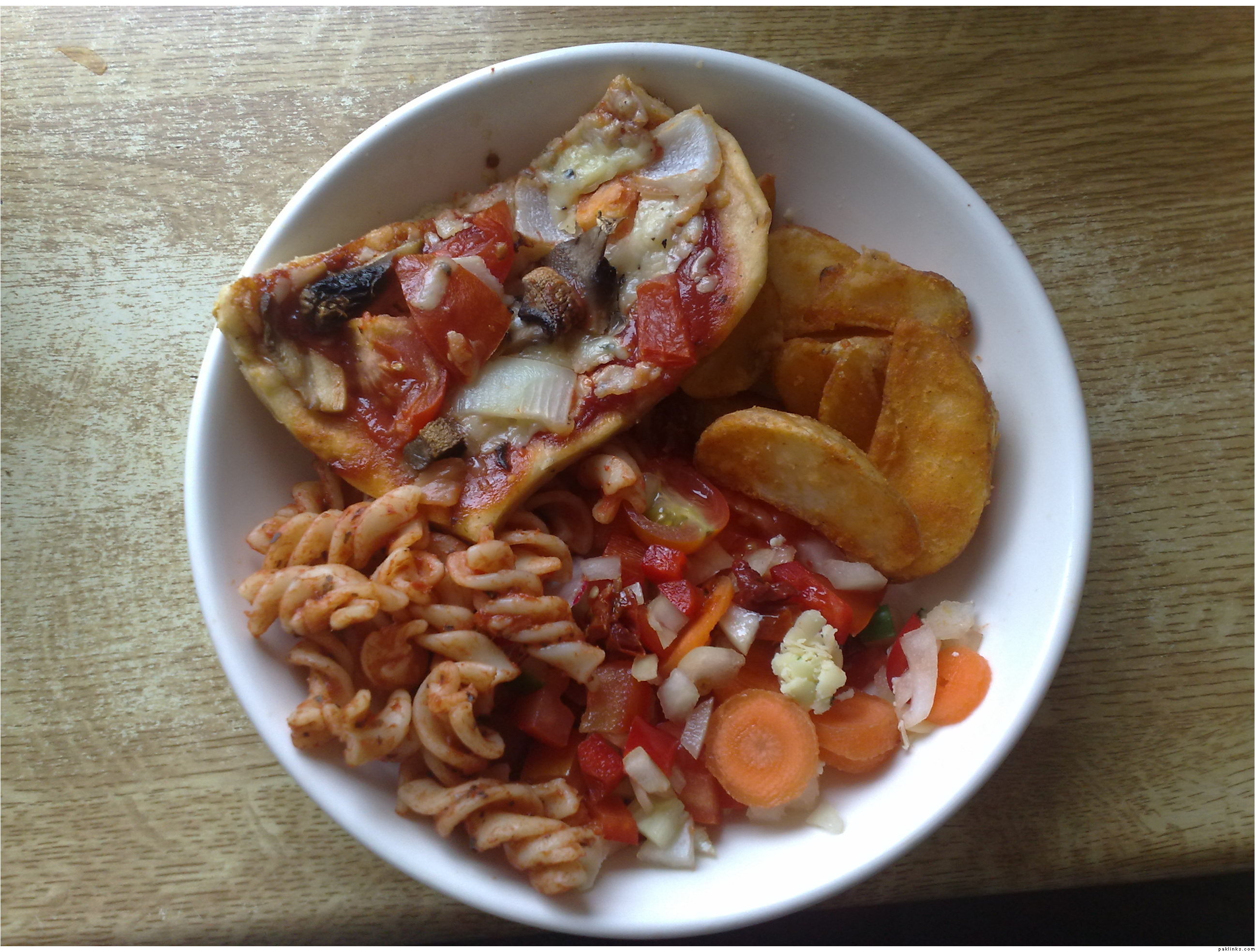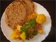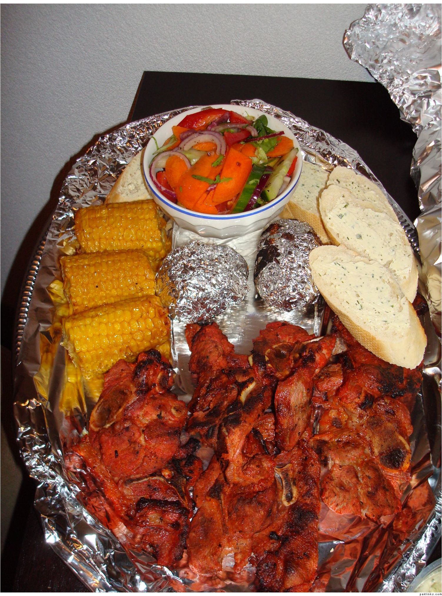 I had chaampeiN, seekh kababs, salad, baked potato’s, corn, fresh fruit and french bread with garlic butter.