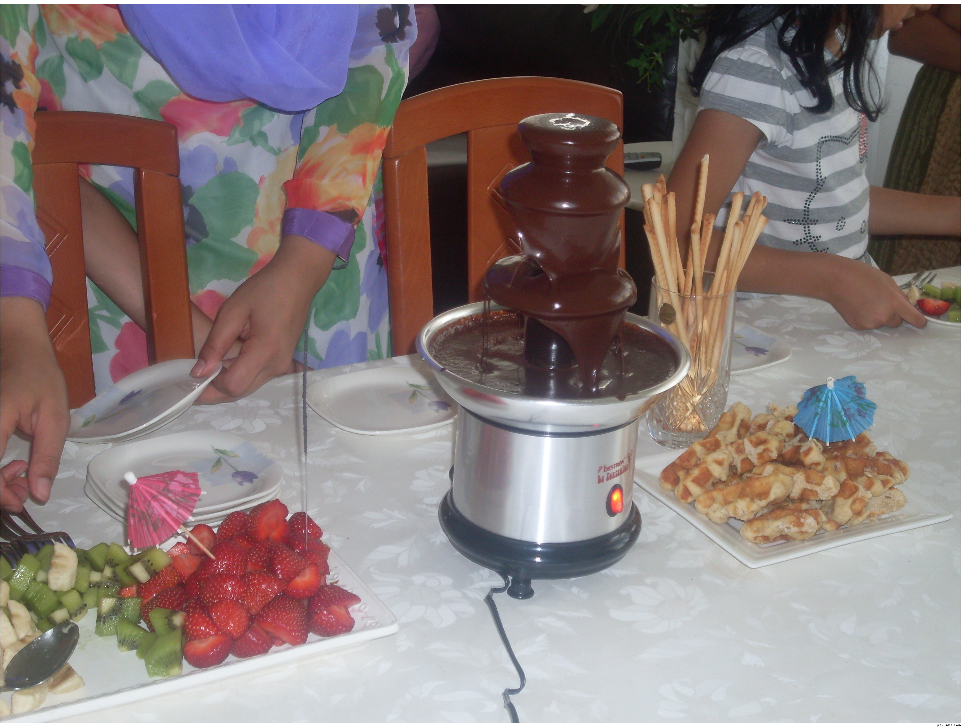 invited her freinds to for iftari because it’s her birthday and we have a chocolate fountain to