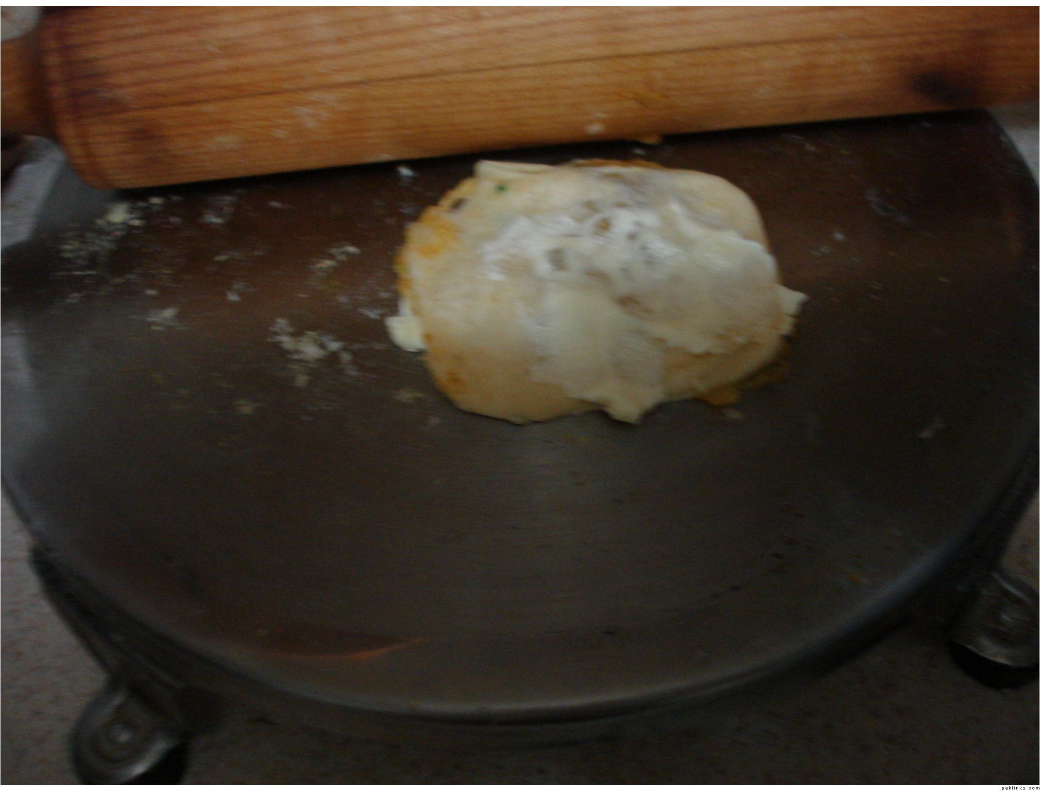 I had more success by making two thin layers wiht the aloo filling in between rather than rolling them up and flattening them…that wasn’t worknig so well for me…