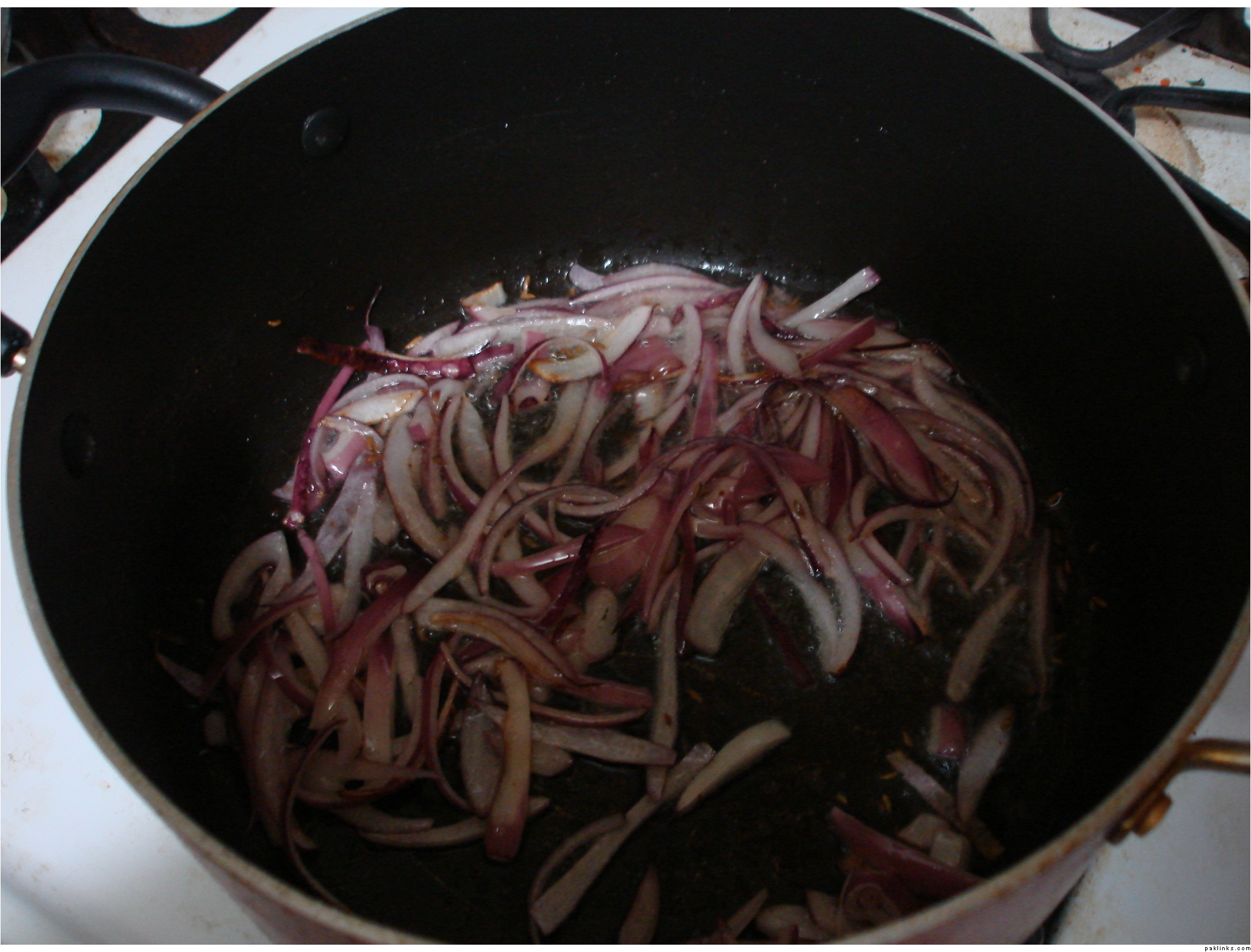 bhooning the meat (1 pound of gosht…yes the butcher laughed at me when i asked for only one pound)