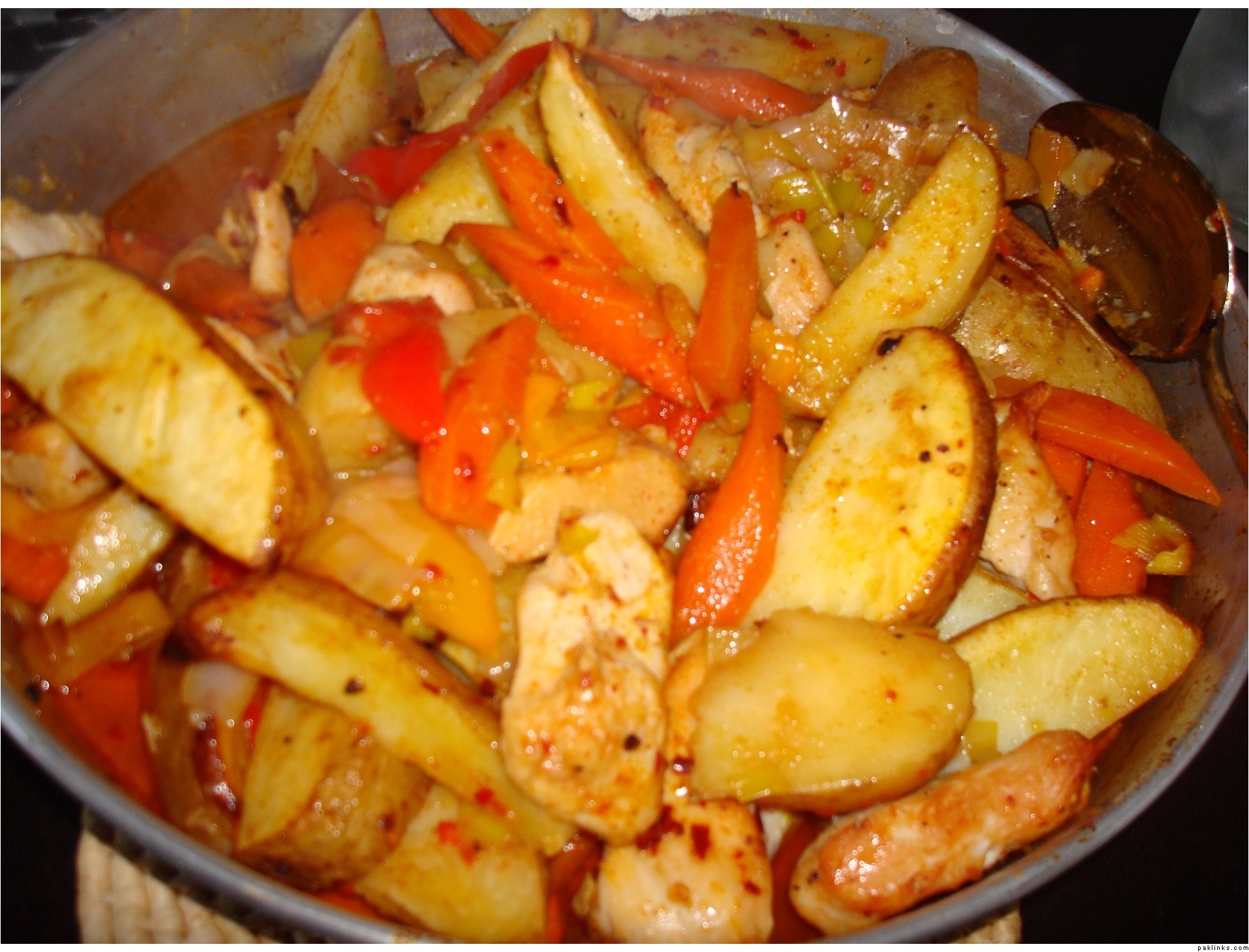 I just marinated patatos with chicken masala paste I used for Chicken and cooked them in oven with chicken.