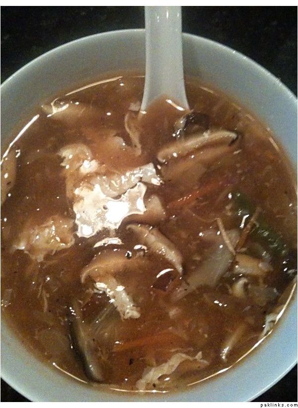 thanks ladies, i used chef samina jalil's recipe and it turned out pretty good. i used fresh shiitake mushrooms, they are commonly available in supermarkets in the US, don't know about other places. it did give a distinct flavour to the soup, the kind you get in good chinese restaurants. the recipe is as follows: