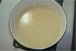 Bring a large pot of water to a boil. Strain rice, and then add to boiling water. Cook for about 5 minutes, and then strain with a strainer.