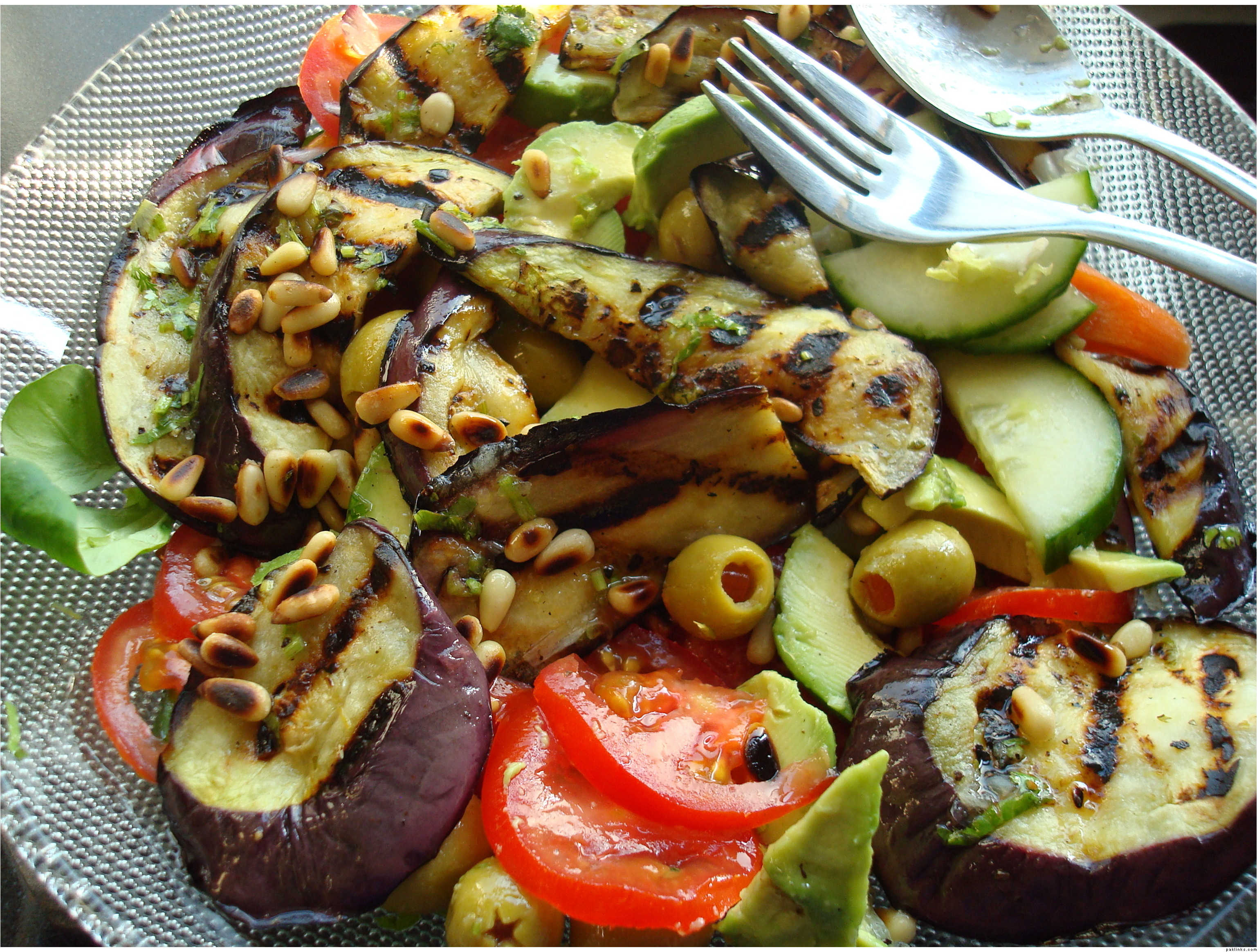 Moroccan grilled chicken and veggies + roasted aubergine salad