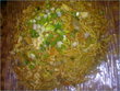 Prepare your egg noodle as per instructions. Heat a pan and add oil.. fry the chicken (finely sliced) with the soya sauce and vineger. Add all of your veggies and cook untill the chicken is fully cooked. In a seperate pan make a thin omelette and cut-it up into small pieces. Combine into the chicken and vegetable mixture along with the cooked noodles. Garnish with spring onions!
