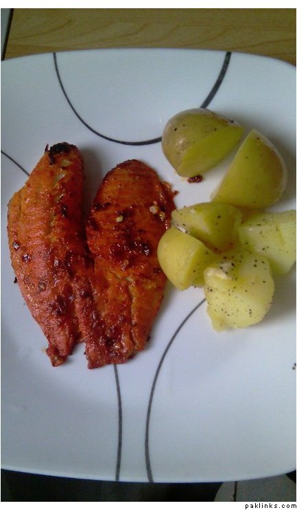 Today’s lunch: Pan-fried tandoori tilapia and boiled potatoes: