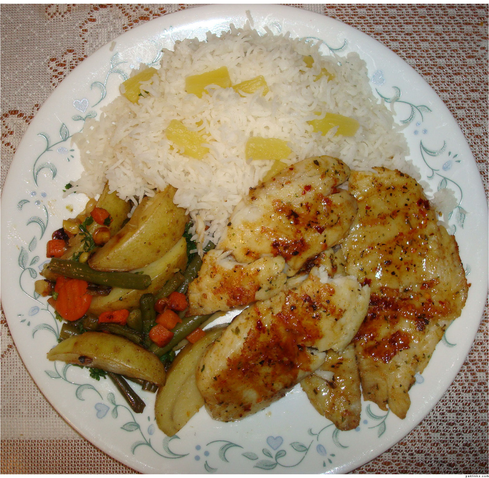 made pan grilled fish and pineapple rice cooked in coconut milk