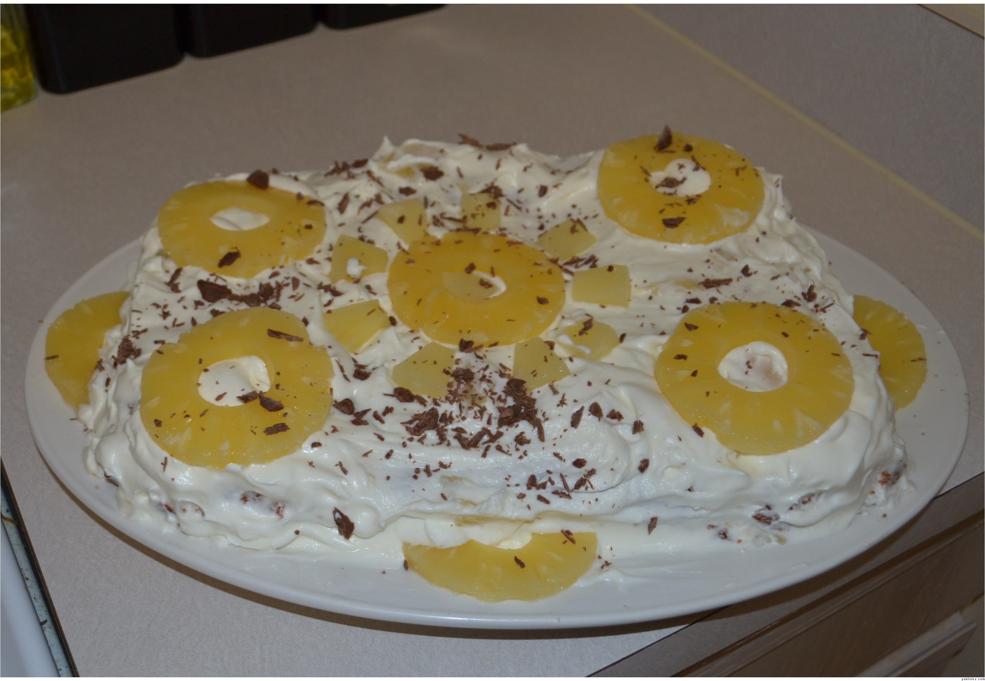I made pineapple cream cake for the first time. It turned out okay except my cream needed to cool for a little longer before I put it on the cake.