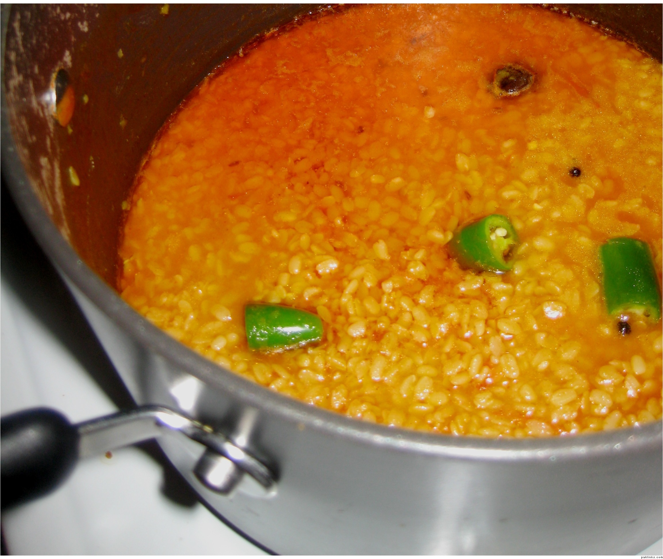 Dump all of this in a pot and cook until daal is cooked. It should not be too thick or too watery. I run a handheld blender so its a little chunky but mot pureed. Add a good handful of chopped hara dhanya.
