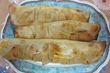 3. Put filling in the centre and fold each side so they overlap each other the filling will show slightly.