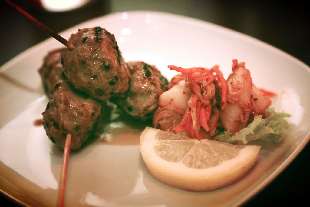 today earlier , had chicken meat balls with teriaki sauce (yakitori sticks)