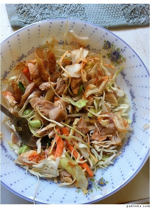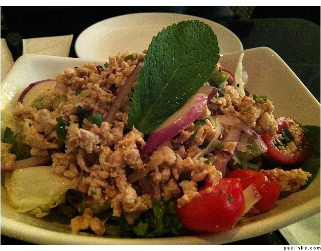 this is a salad called “larb”…minced chicken with chilli dressing on lettuce.
