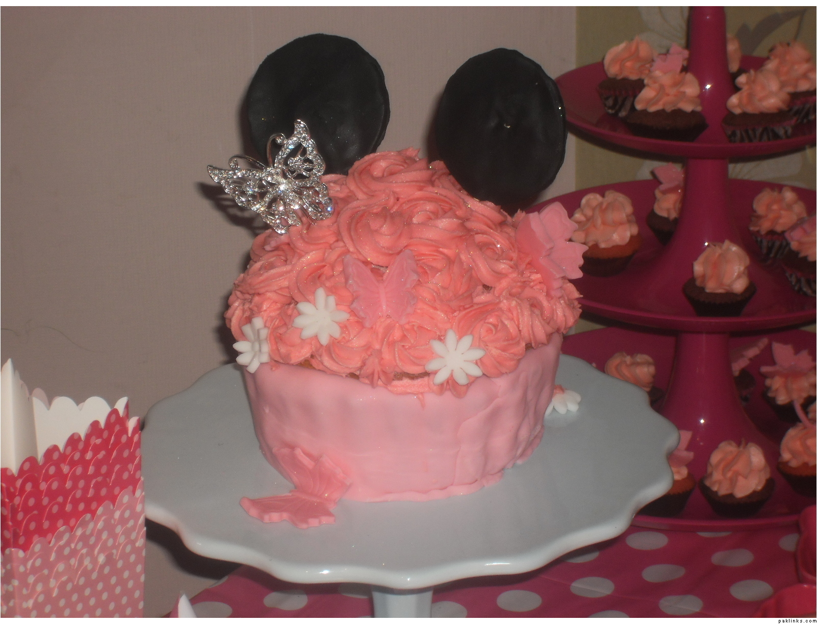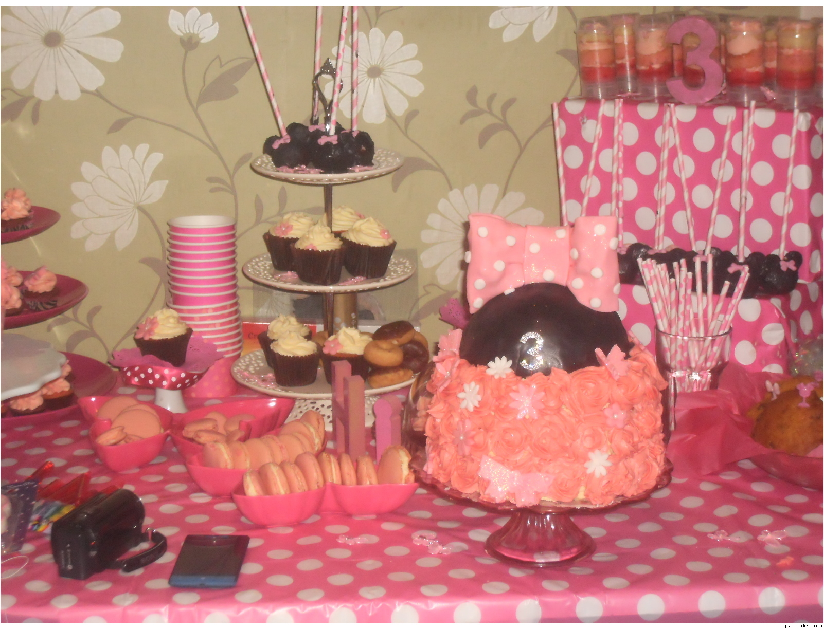 The dessert tables concluded of: Mickey Mouse Brownie Cupcakes, red velvet mini cupcakes, pink ombre push up cake pops, macaroons, carrot cake whoopie pies and minnie mouse cake pops. Yummo!