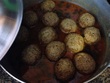 In ½ cup oil fry 1 onion take out and put in blender, and 1 raw onion with ½ cup yogurt. In same oil add sabit garam masala, haldi, chili powder, salt, ginger/garlic paste, and dhania powder, splash of water. Bhuno. Add mixture of onions and yogurt. Bhuno. Add 2 cups water. When gravy come to boil add koftay. Cover for 15 min. garnish with hara dhania.