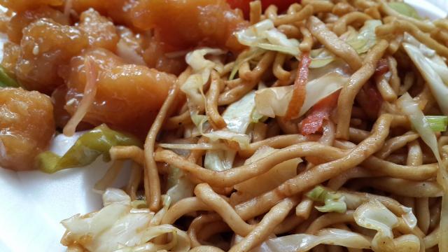 Noodle Stir Fry with Sweet & Sour Chicken.