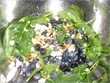 when the chicken is cooked, add your choice of vegetables. I had a mix of red cabbage + carrots, as well as bell peppers celery, red onions and scallions. bhoon it on high heat for a few minutes, and then add the mango slices