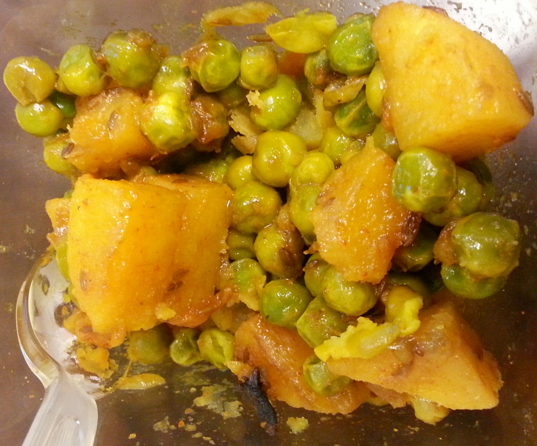 Lunch that I am having right now. Green peas with Aaloo!!! yum yum