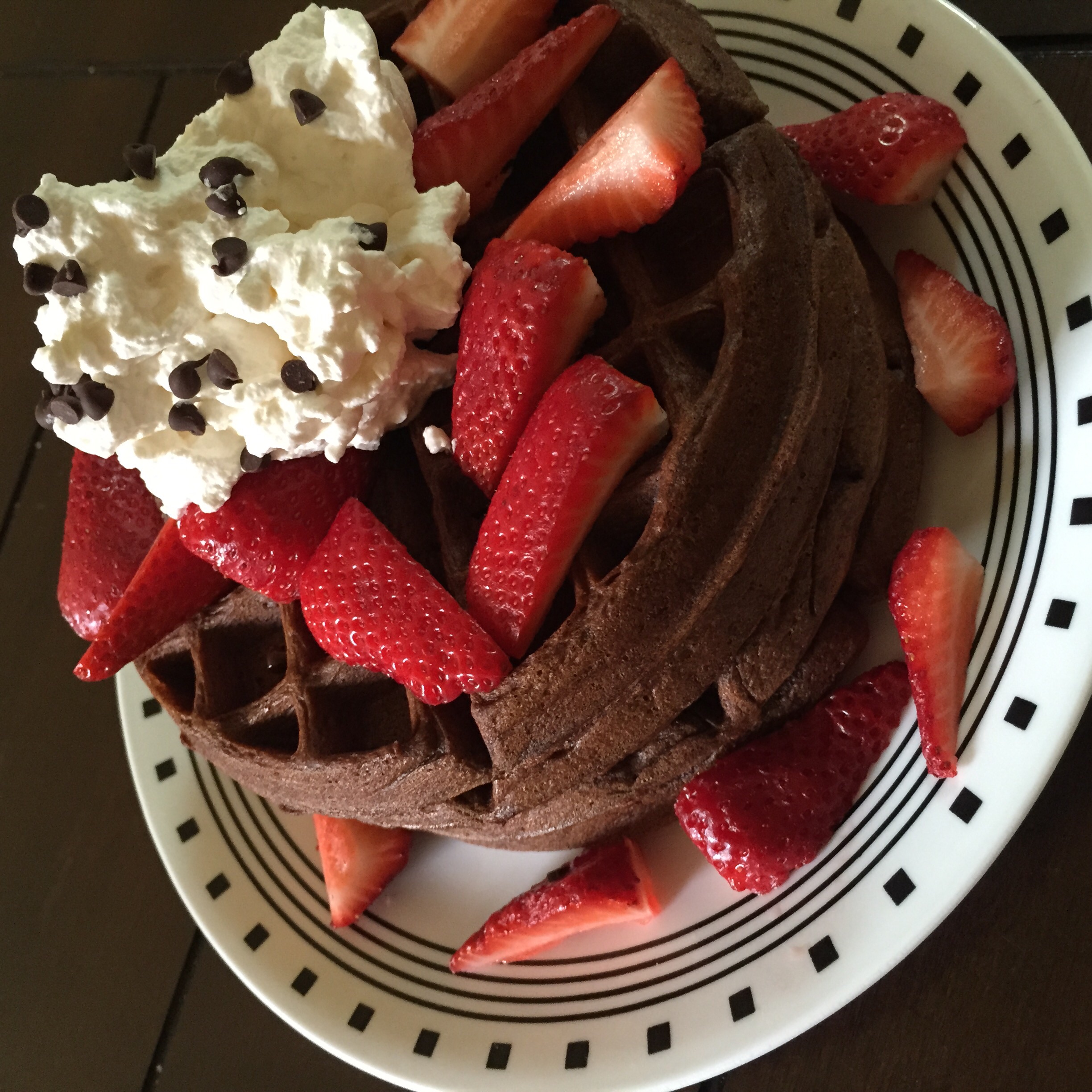 I used 1 cup of heavy whipping cream, 1 tablespoon of confectioners sugar, and a splash of vanilla. And then whip it for a few minutes until the desired consistency is reached.
