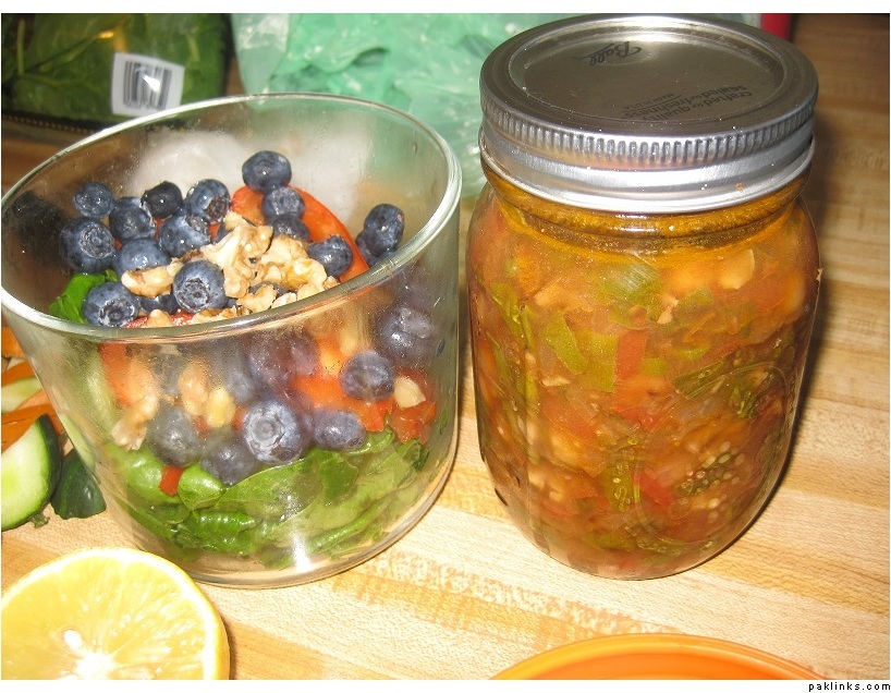Healthy Vegetarian Lunch: Chard Soup and Spinach Blueberry Salad