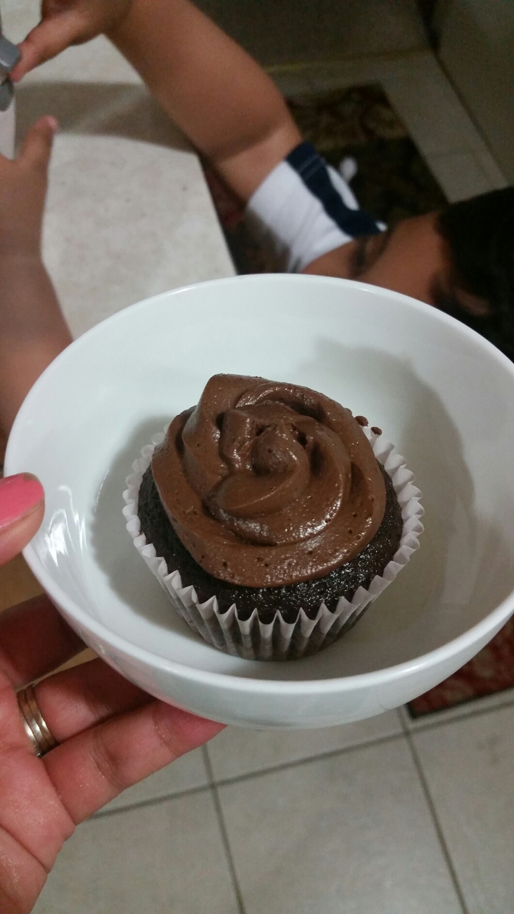 Made chocolate cupcakes w/dark chocolate frosting last night