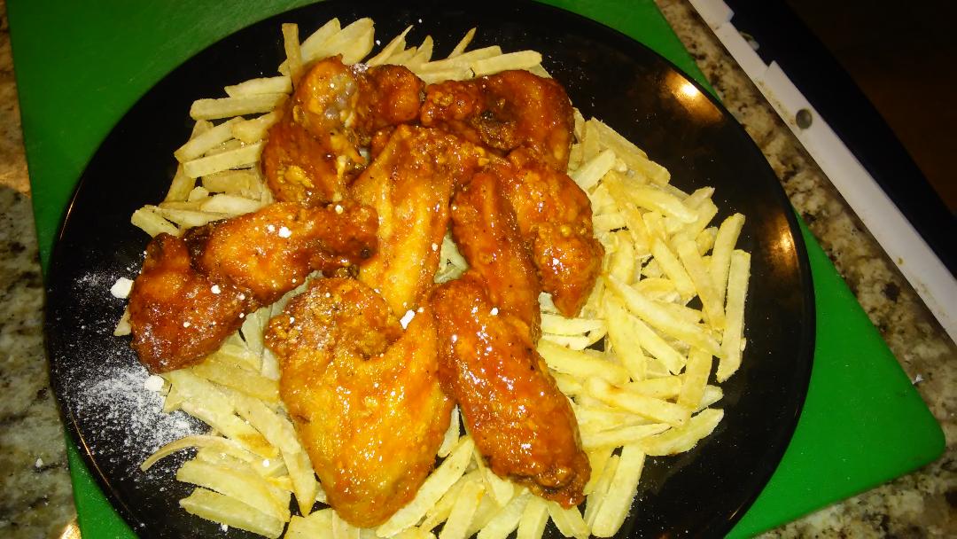 Tonight dinner was Honey buffalo Hot wings & french fries.